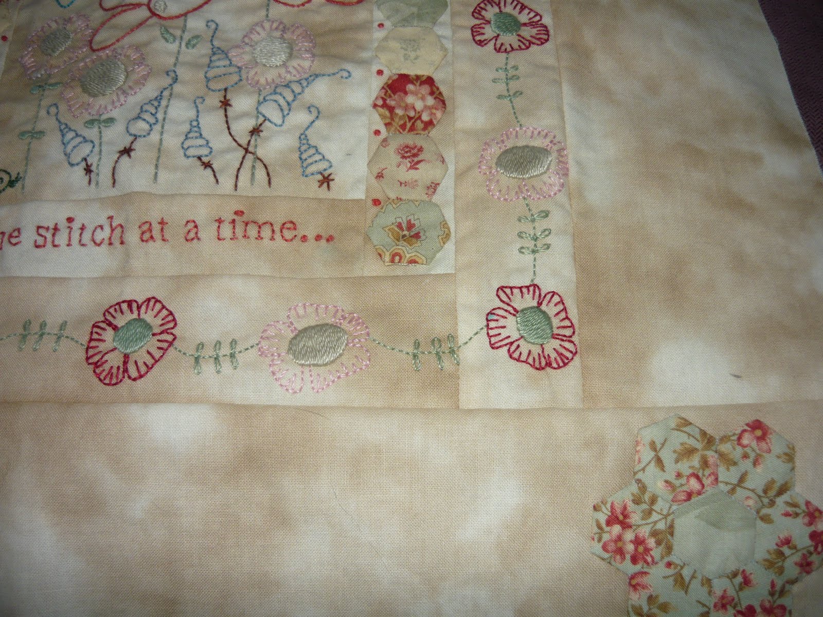 As we chatted, I finished this block of My Garden, last year's BOM from Lynette Anderson.