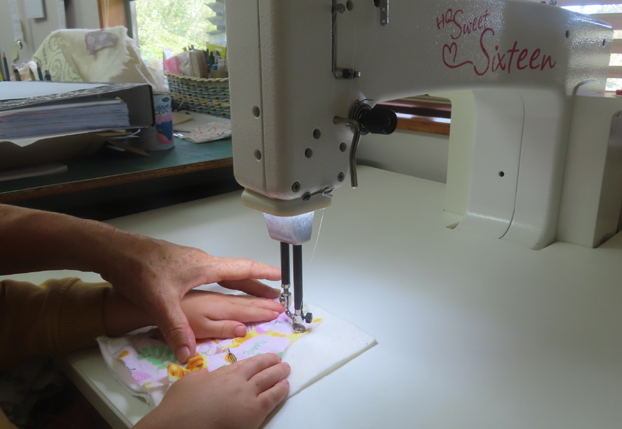 Younger brother wanted to sew a little bit as well - no, I did not set up the second older machine I have in storage but together he and I did a little sewing on the only other free machine, my Sweet 16.